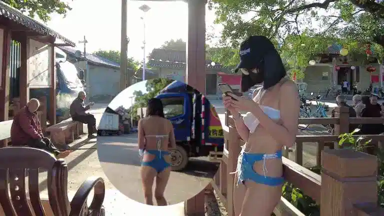 cikaimoon露出.暴露穿着遛公园,吸引大爷们注视